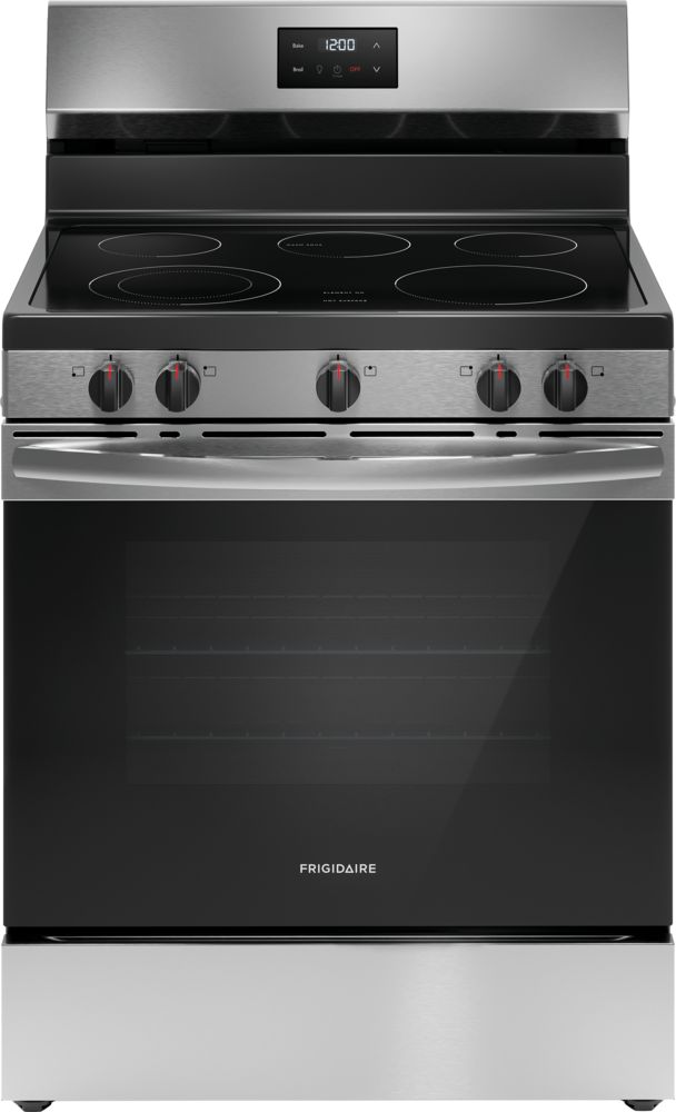The Frigidaire 30" Electric Range allows you to get meals on the table faster with our 3,000W Quick Boil Element. Enjoy more cooktop flexibility with five cooktop elements designed to handle all of your cooking needs, including the 2-in-1 Dual Expandable Element. Front of the box is open for showing purposes. Great condition. No scratches or dents. Factory warranty included. Same day pickup available. Immediate delivery is available.Read More