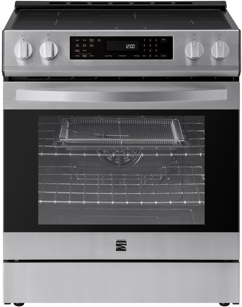 Discover the advantages of induction cooking with this Kenmore range. The Induction cooktop is fast, precise, energy-efficient, and easy to clean. A powerful 3,700W Turbo Boil® element really turns up the heat for fast boiling, stir-frying and searing. True Convection ensures even baking on every rack and an air fry setting makes crispy appetizers. The self-clean oven saves time, and the storage drawer conveniently stores cookware.Read More
