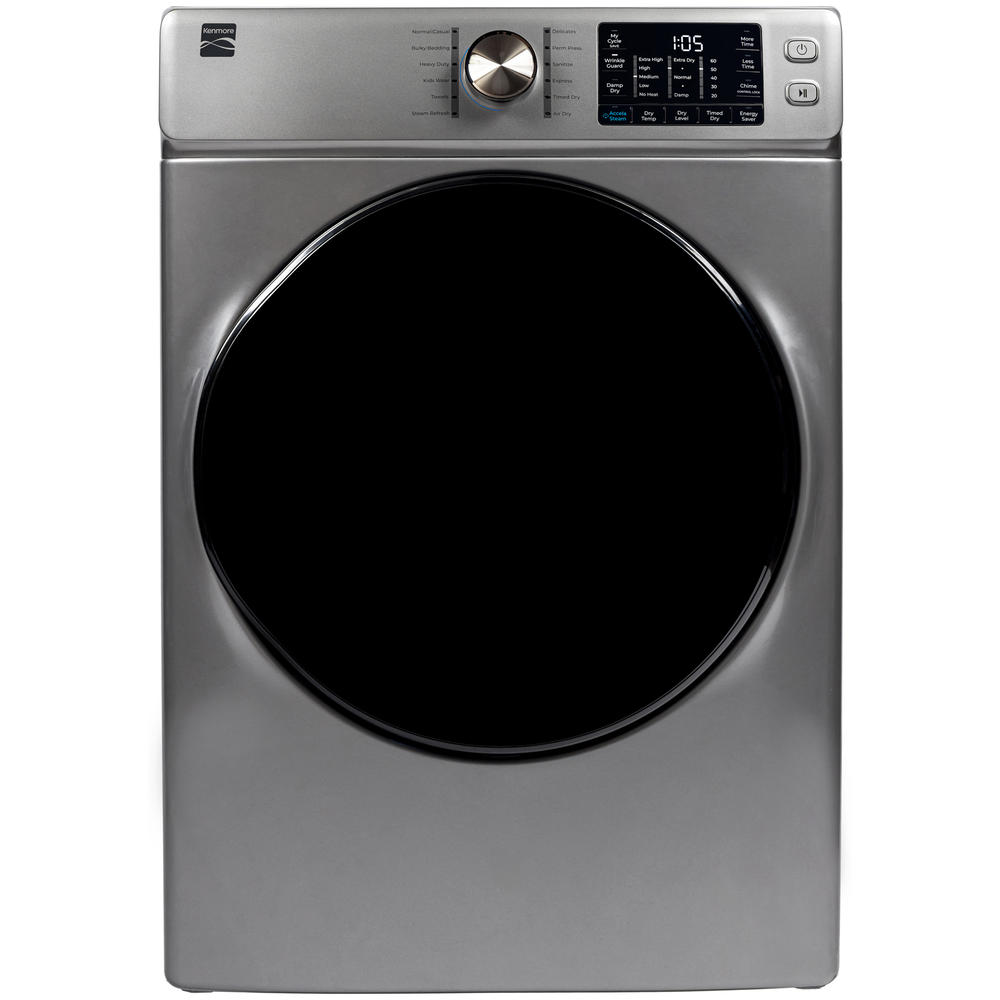 8.0 cu. ft. Capacity|Accela Steam™ Technology|Sensor Drying System|Sanitize Dry Cycle|Energy Saver option The 8.0 cu. ft. Kenmore front load gas dryer features 12 cycles with 8 options for exceptional versatility and customized fabric care. Accela Steam™ technology helps to reduce wrinkles, odors and static cling while the Sensor Drying System automatically adjusts time to help prevent over drying. The Sanitize cycle removes bacteria from hard-to-wash items like pillows and plush toys, right in the dryer—no washing needed. The Wrinkle Guard® option helps prevent wrinkles from setting in.Read More