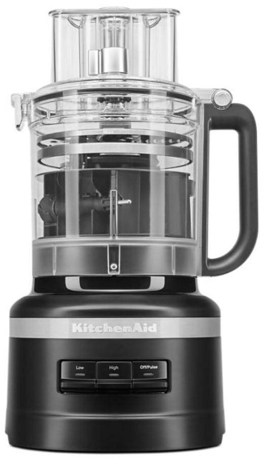 Model KFP1318 includes: (1) food processor, (1) 13-cup work bowl, (1) multi-purpose blade, (1) adjustable slicing disc, (1) reversible shredding disc, (1) dough blade, (1) storage caddy.